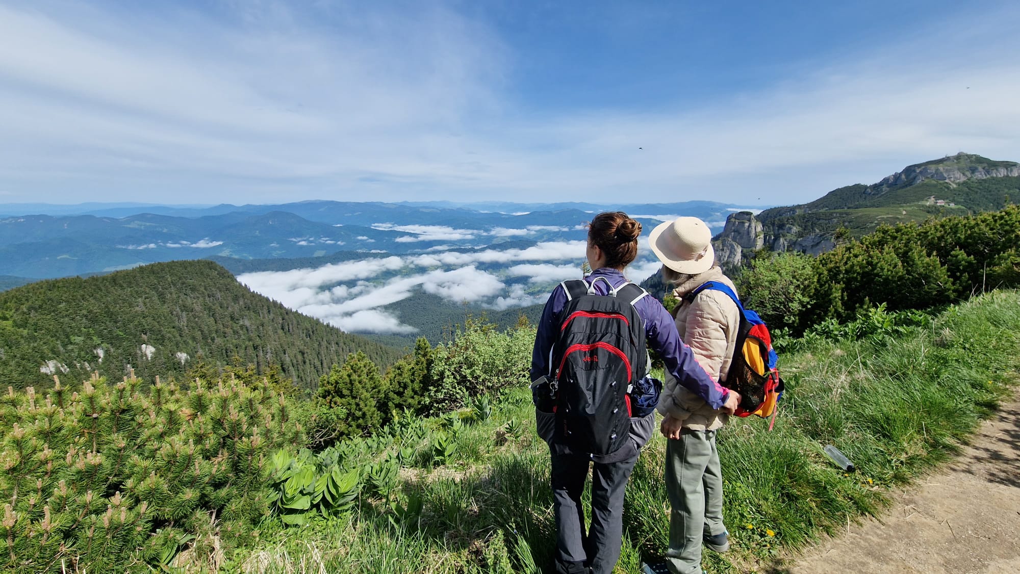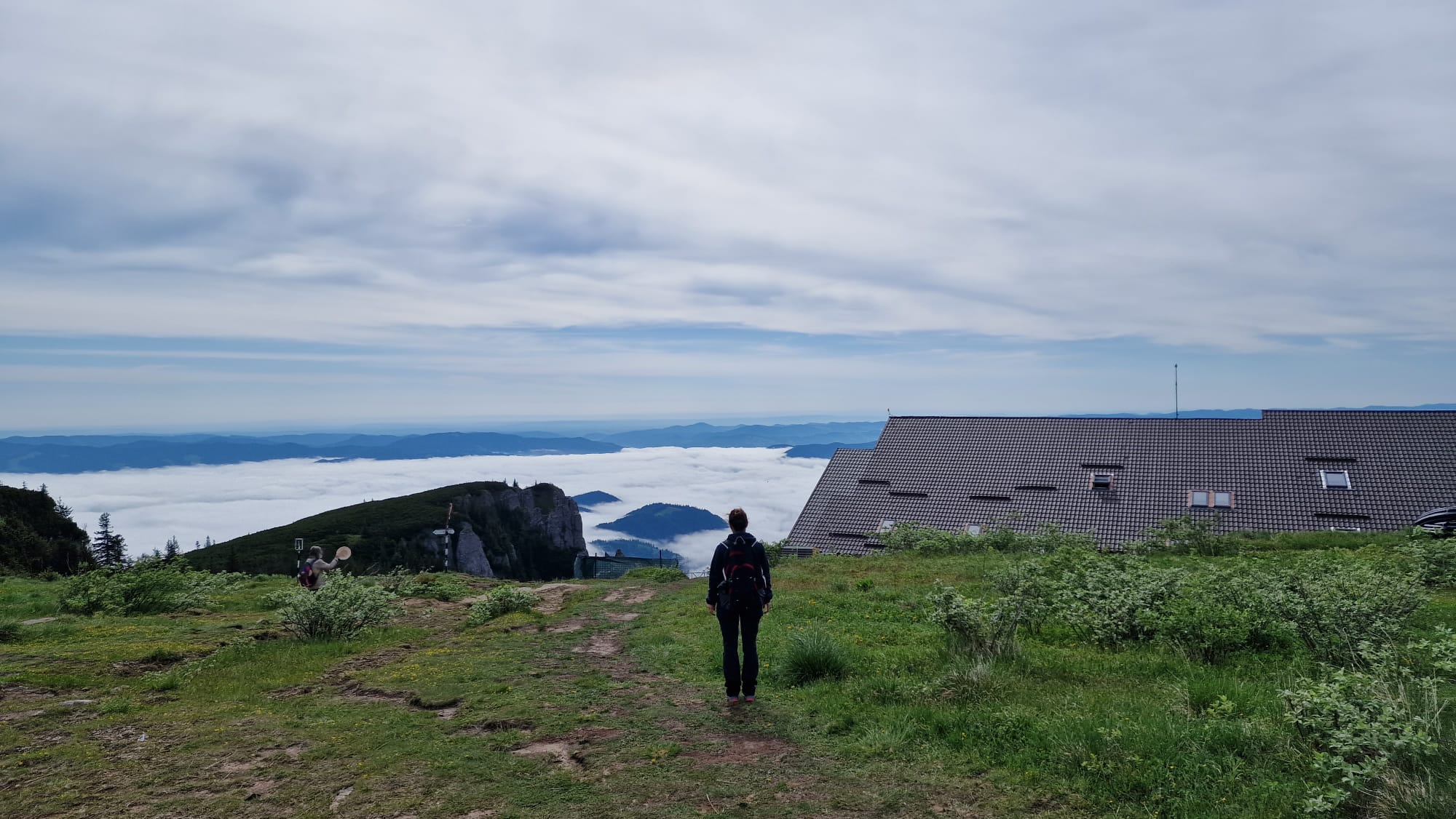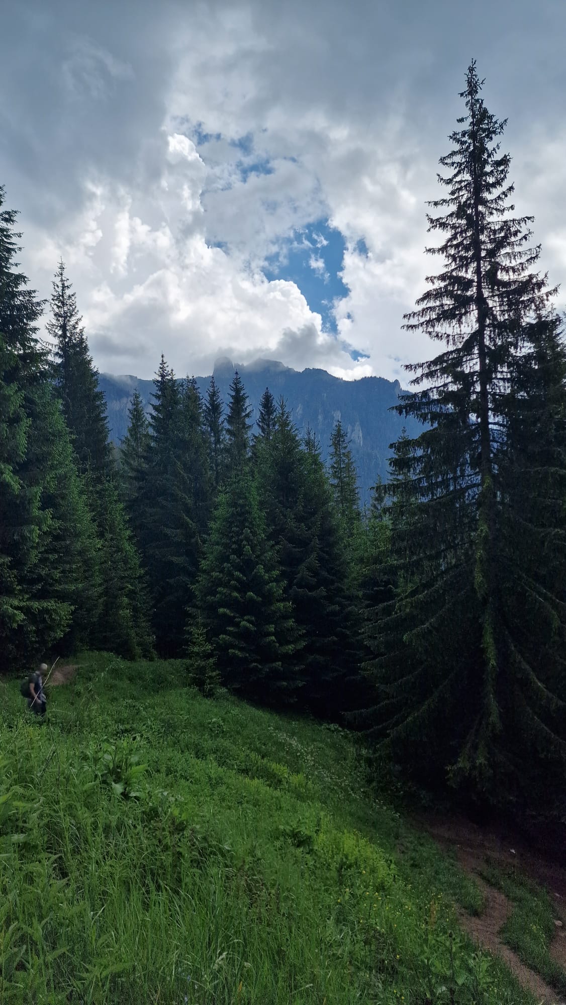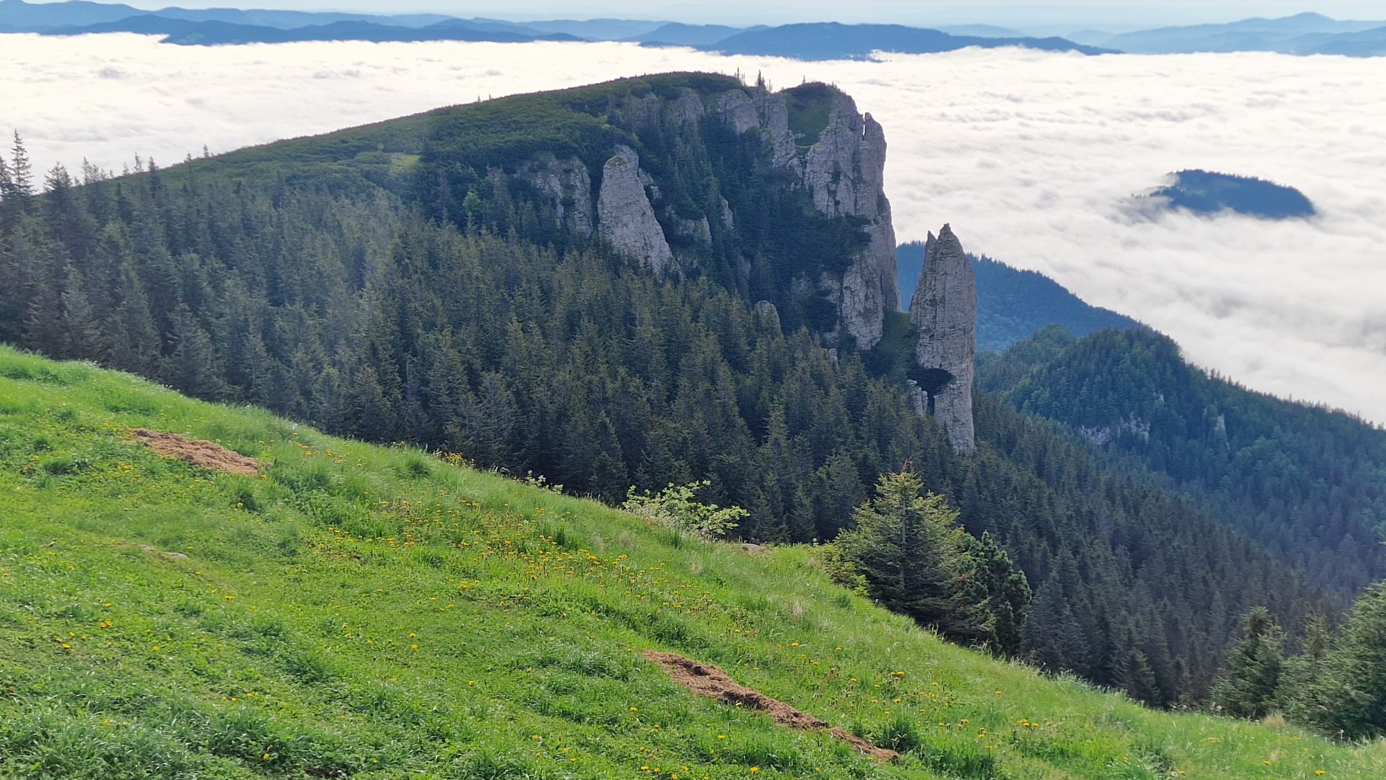Ceahlăul este spectacol, dar nu te lăsa păcălit, urcușul e greu, iar muntele nu se lasă ușor cucerit. Jertfa noastră a fost depusă cam în zona La Morminte, puțin mai sus de crucea eroilor neamului, – care au apărat cu viața lor pământul strămoșesc, în Șaua Curmătura, în cel de-al doilea război mondial -, când deodată ne-au învăluit norii și s-a despicat cerul, slobozind tunete, fulgere și o ploaie torențială cu gheață. Pelerinele de ploaie nu mai făceau față, eram deja la o altitudine considerabilă, unde cu greu mai găsești adăpost, semnele de atenționare în privința viperelor ne dădeau fiori, iar ploaia se scurgea șiroaie pe versant. După aproape o oră ploaia s-a oprit, norii s-au disipat, iar în lumina caldă a soarelui s-au arătat pe rând Panaghia, Vârful Toaca, Scăldătoarea Vulturilor și Piatra Ciobanului. Eram deasupra norilor și în jur erau tufe de afine, clopoței de munte și muguri de brad.