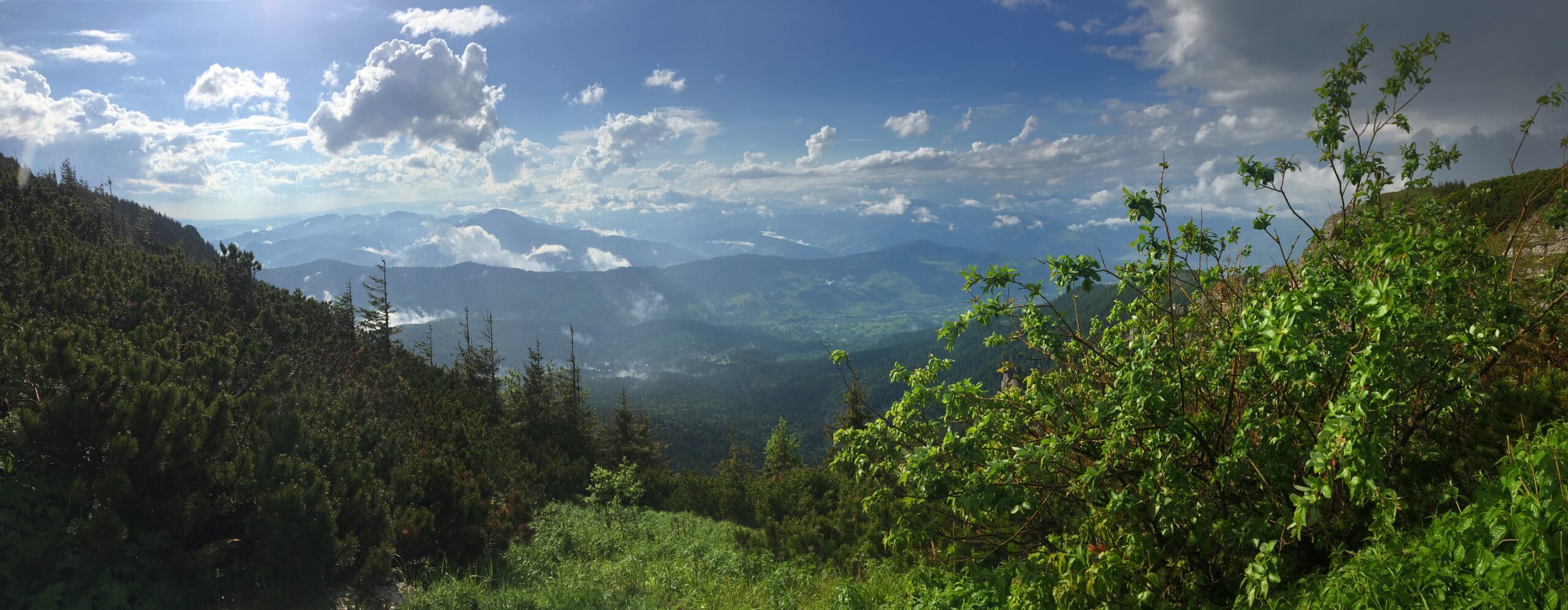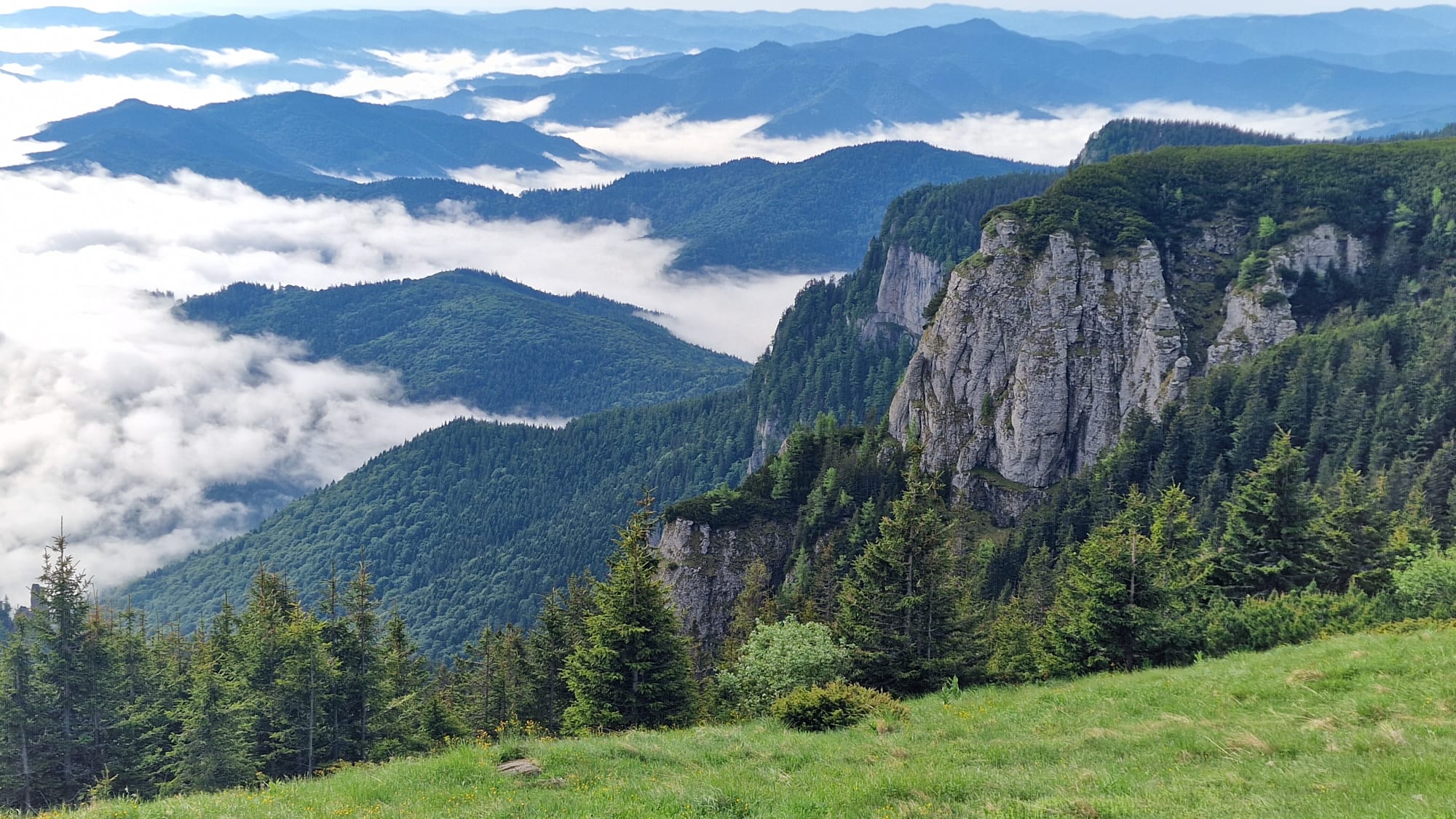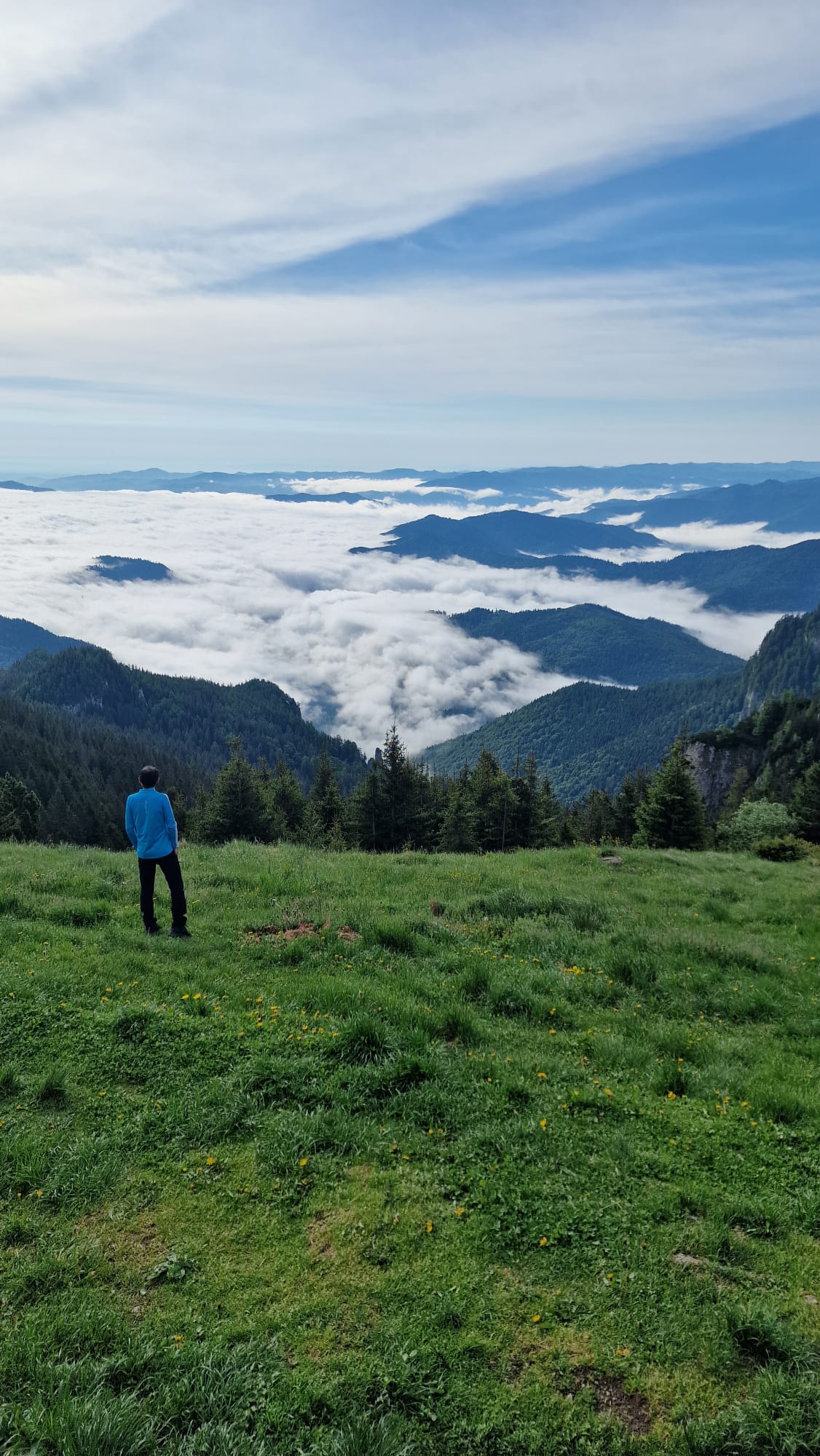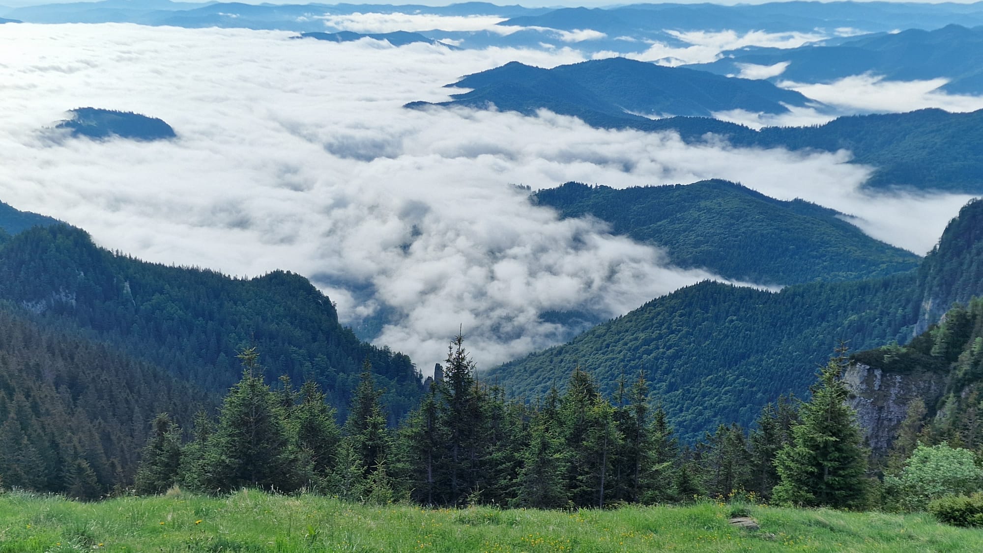 Ceahlăul este spectacol, dar nu te lăsa păcălit, urcușul e greu, iar muntele nu se lasă ușor cucerit. Jertfa noastră a fost depusă cam în zona La Morminte, puțin mai sus de crucea eroilor neamului, – care au apărat cu viața lor pământul strămoșesc, în Șaua Curmătura, în cel de-al doilea război mondial -, când deodată ne-au învăluit norii și s-a despicat cerul, slobozind tunete, fulgere și o ploaie torențială cu gheață. Pelerinele de ploaie nu mai făceau față, eram deja la o altitudine considerabilă, unde cu greu mai găsești adăpost, semnele de atenționare în privința viperelor ne dădeau fiori, iar ploaia se scurgea șiroaie pe versant. După aproape o oră ploaia s-a oprit, norii s-au disipat, iar în lumina caldă a soarelui s-au arătat pe rând Panaghia, Vârful Toaca, Scăldătoarea Vulturilor și Piatra Ciobanului. Eram deasupra norilor și în jur erau tufe de afine, clopoței de munte și muguri de brad.