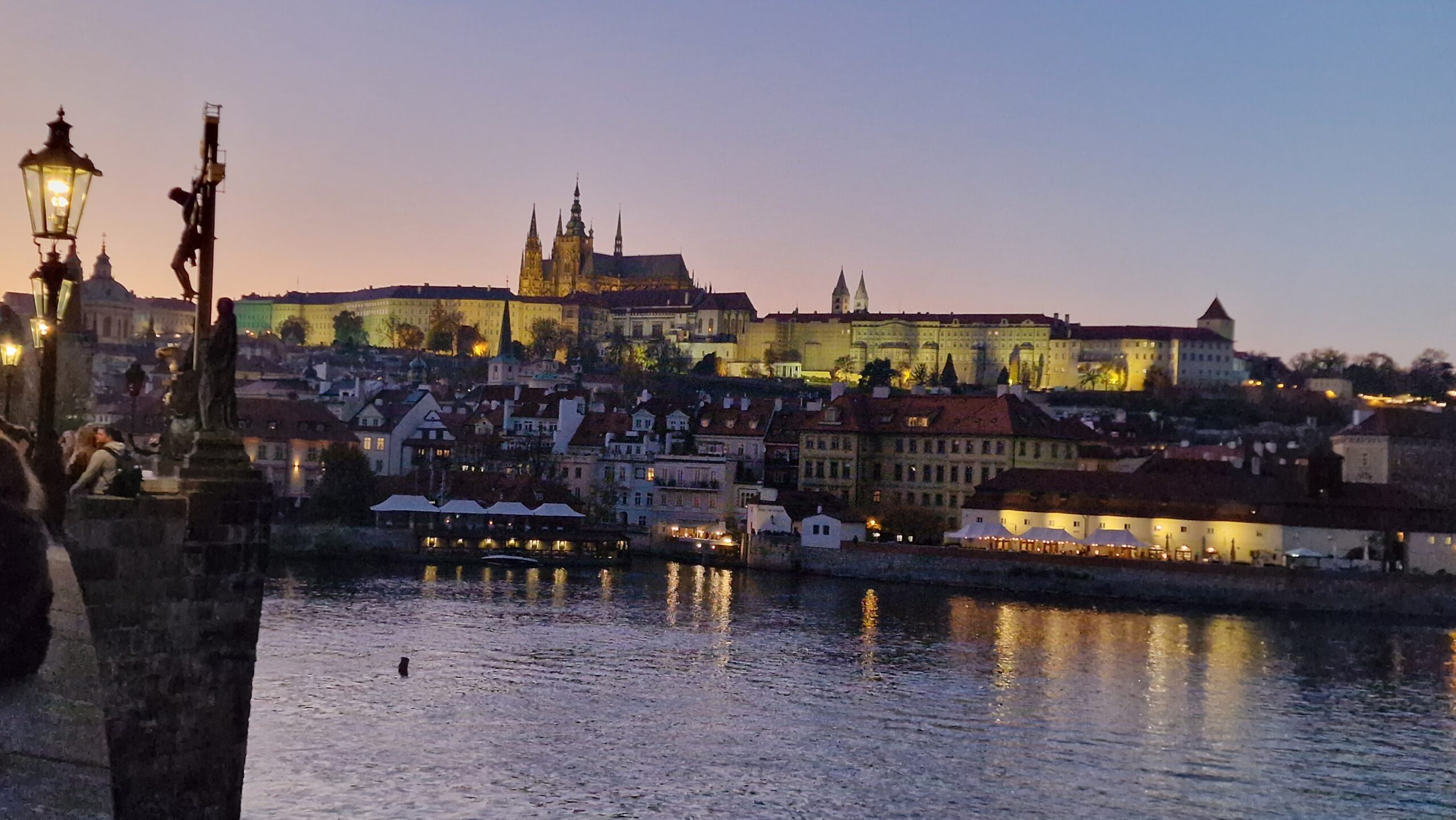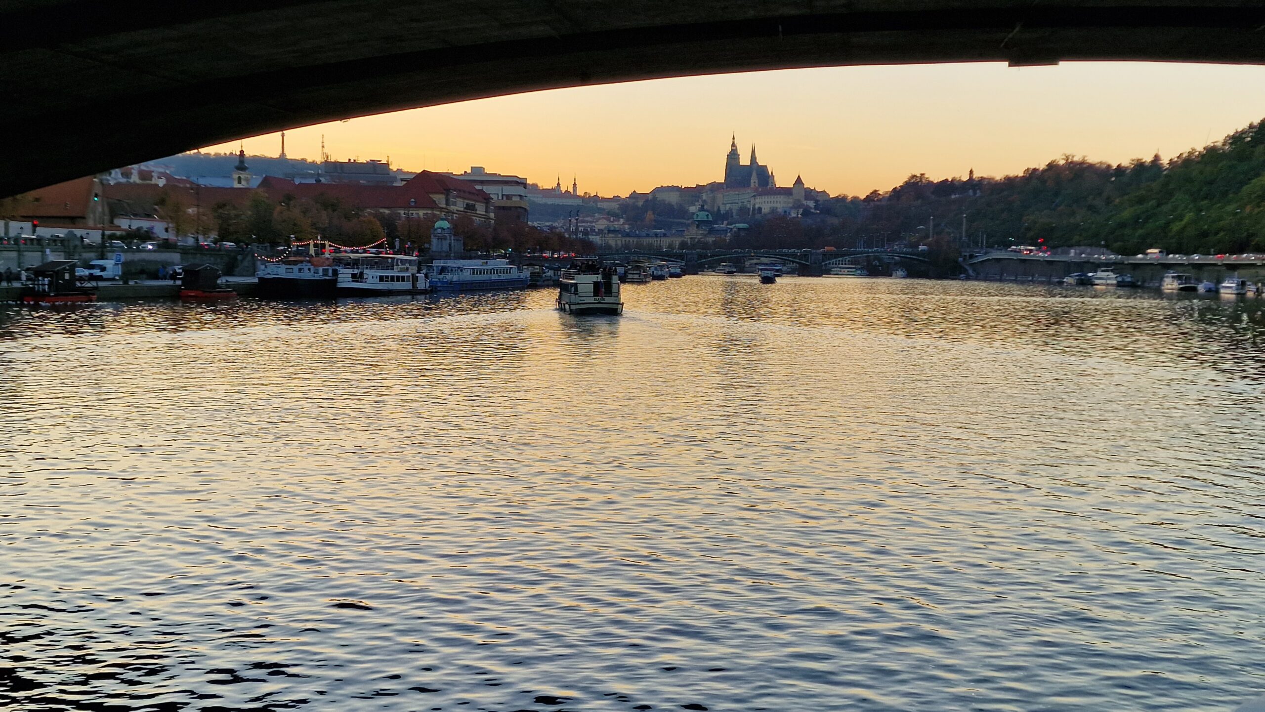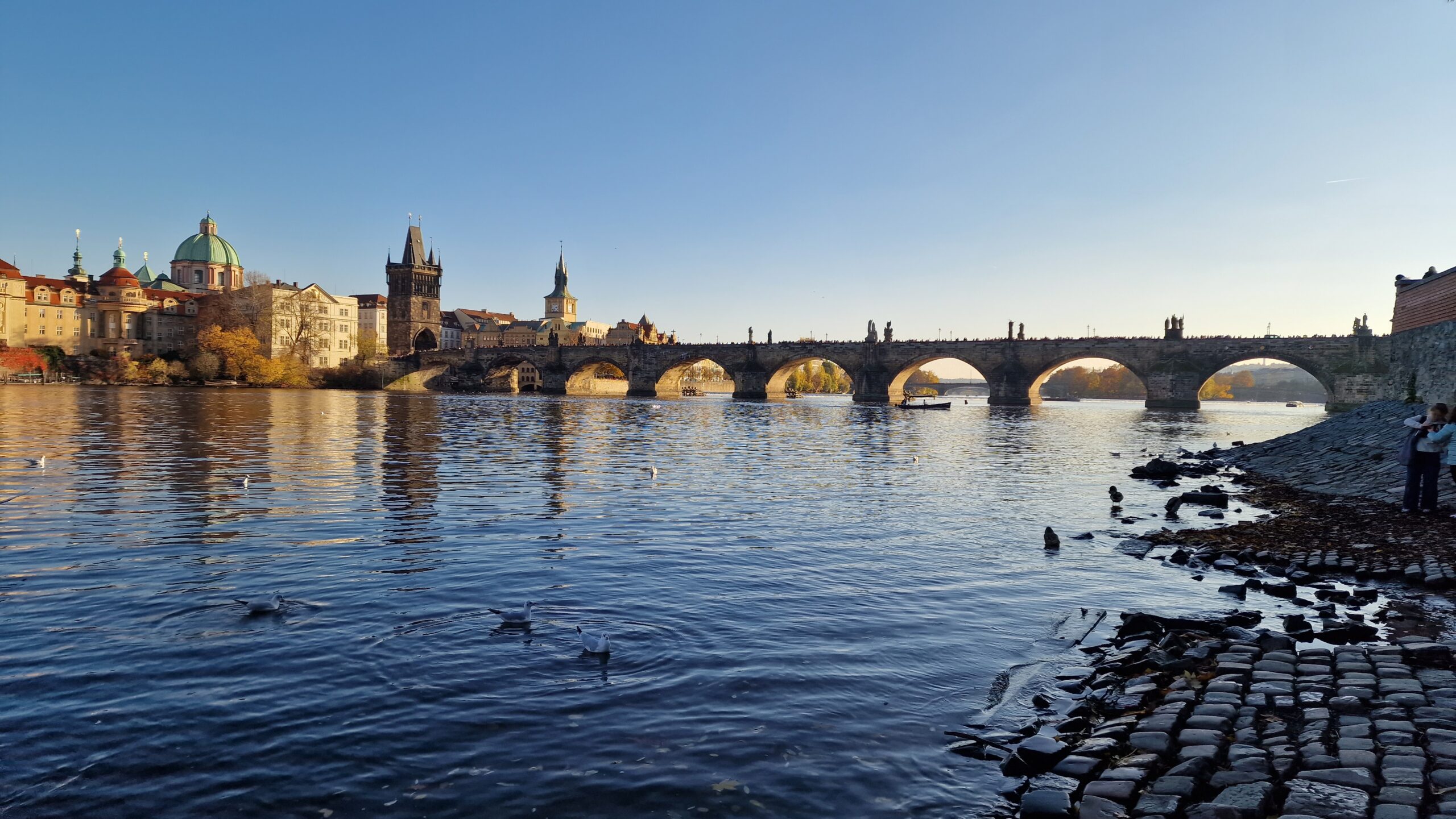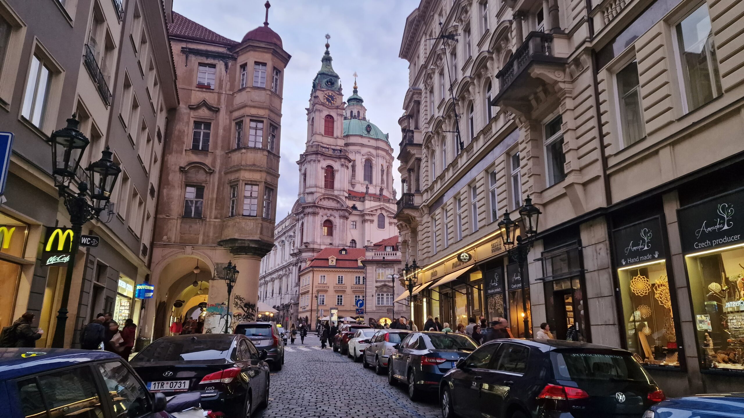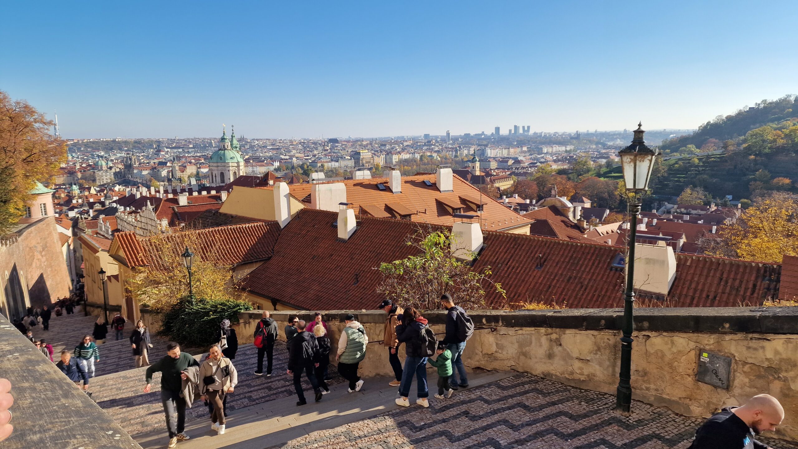 De la castel, admirând podurile care se întind peste râul strălucitor, în soarele toamnei târzii, am pășit către Mala Strana, unde ne întâmpină vechile case burgheze și unde putem admira cupola de aramă a bisericii baroce Sf. Nicolae.