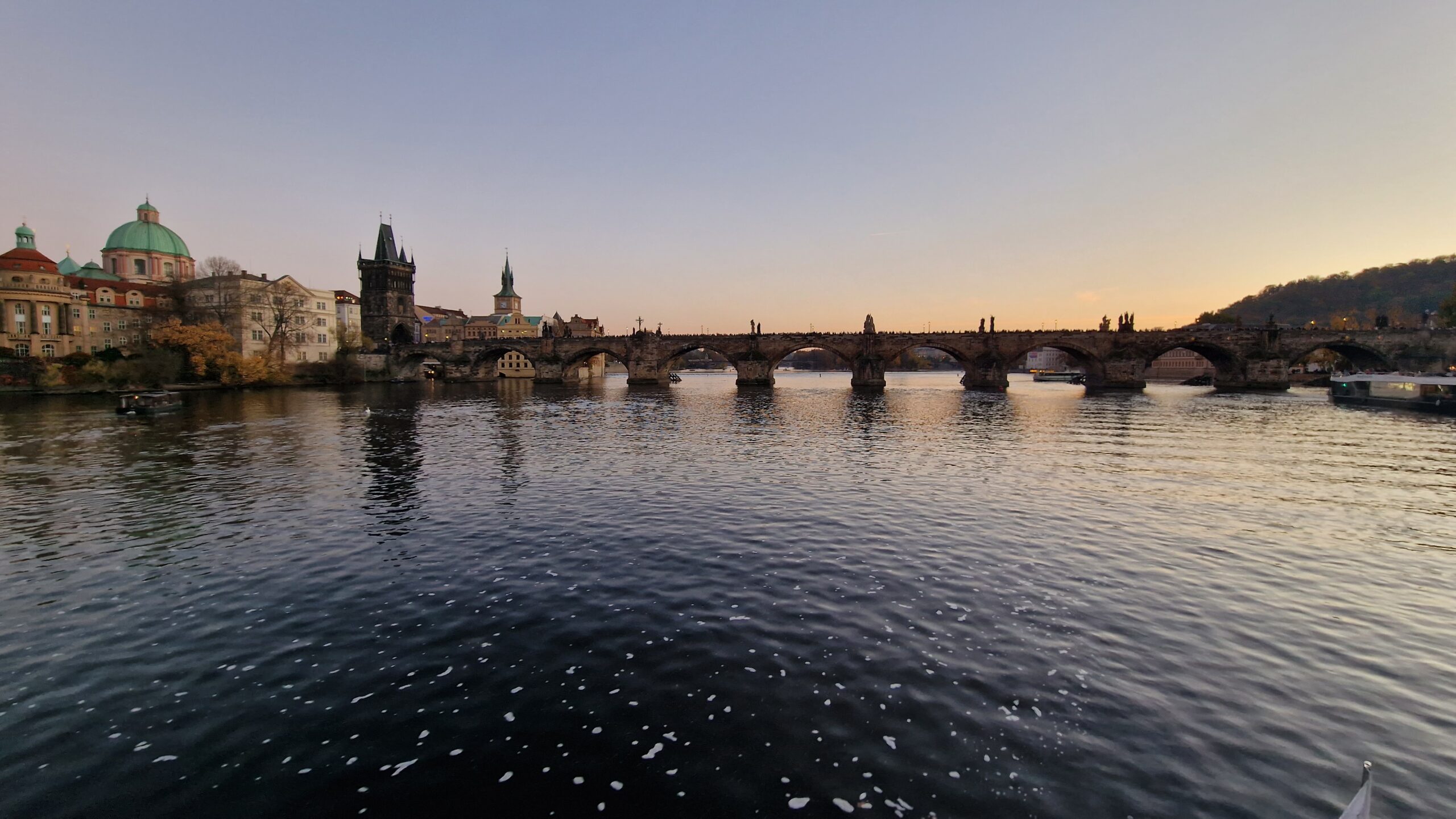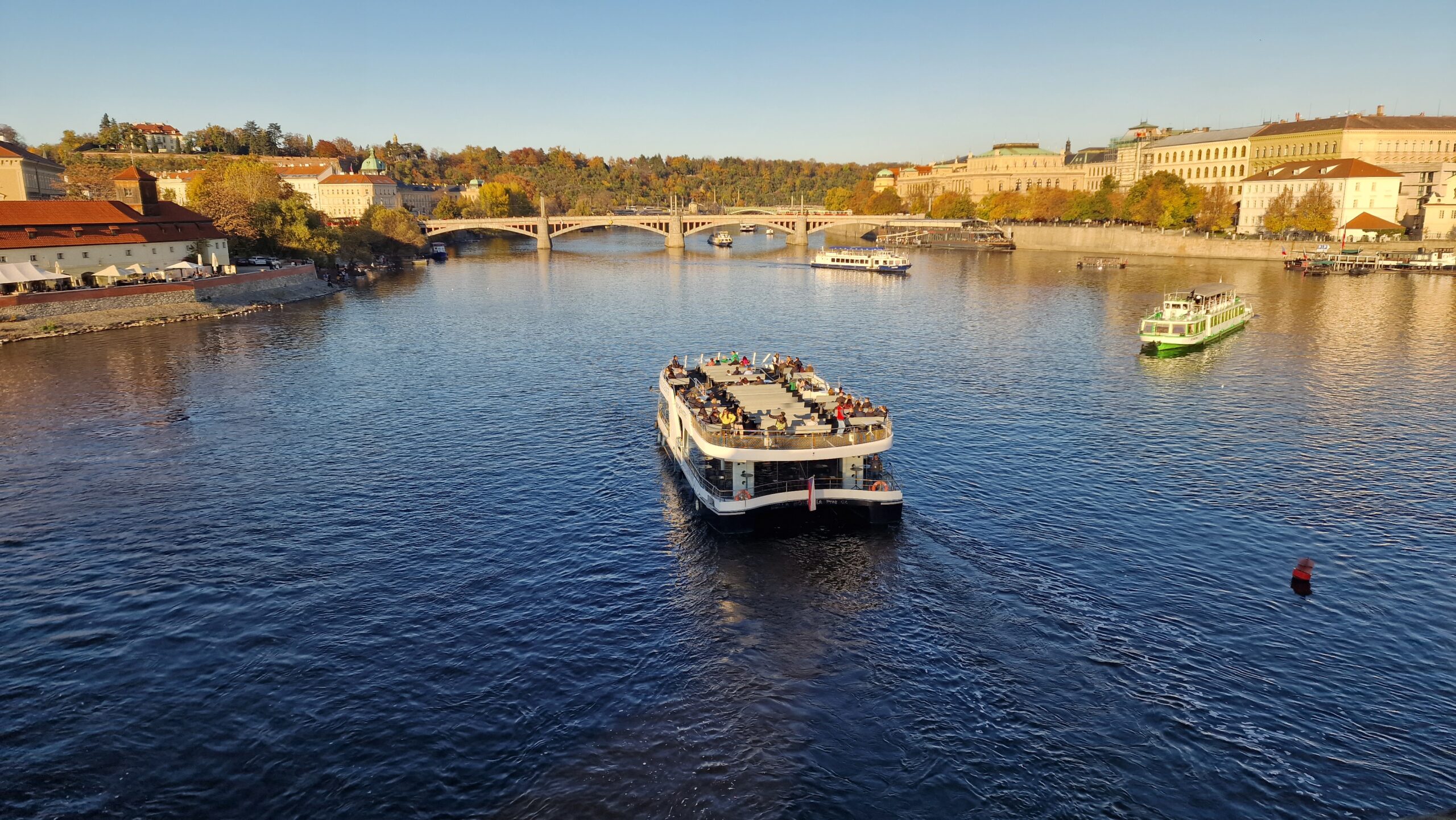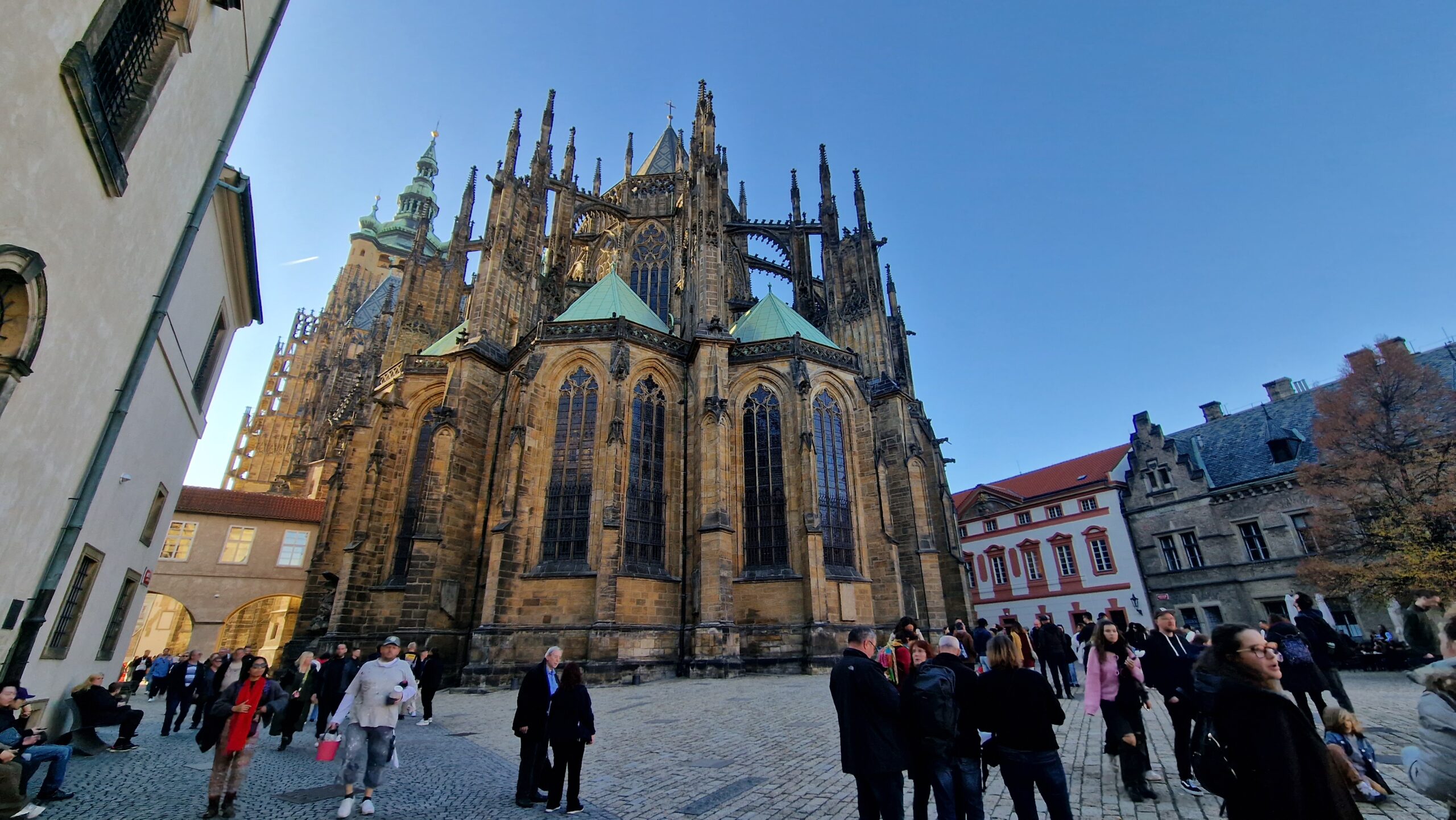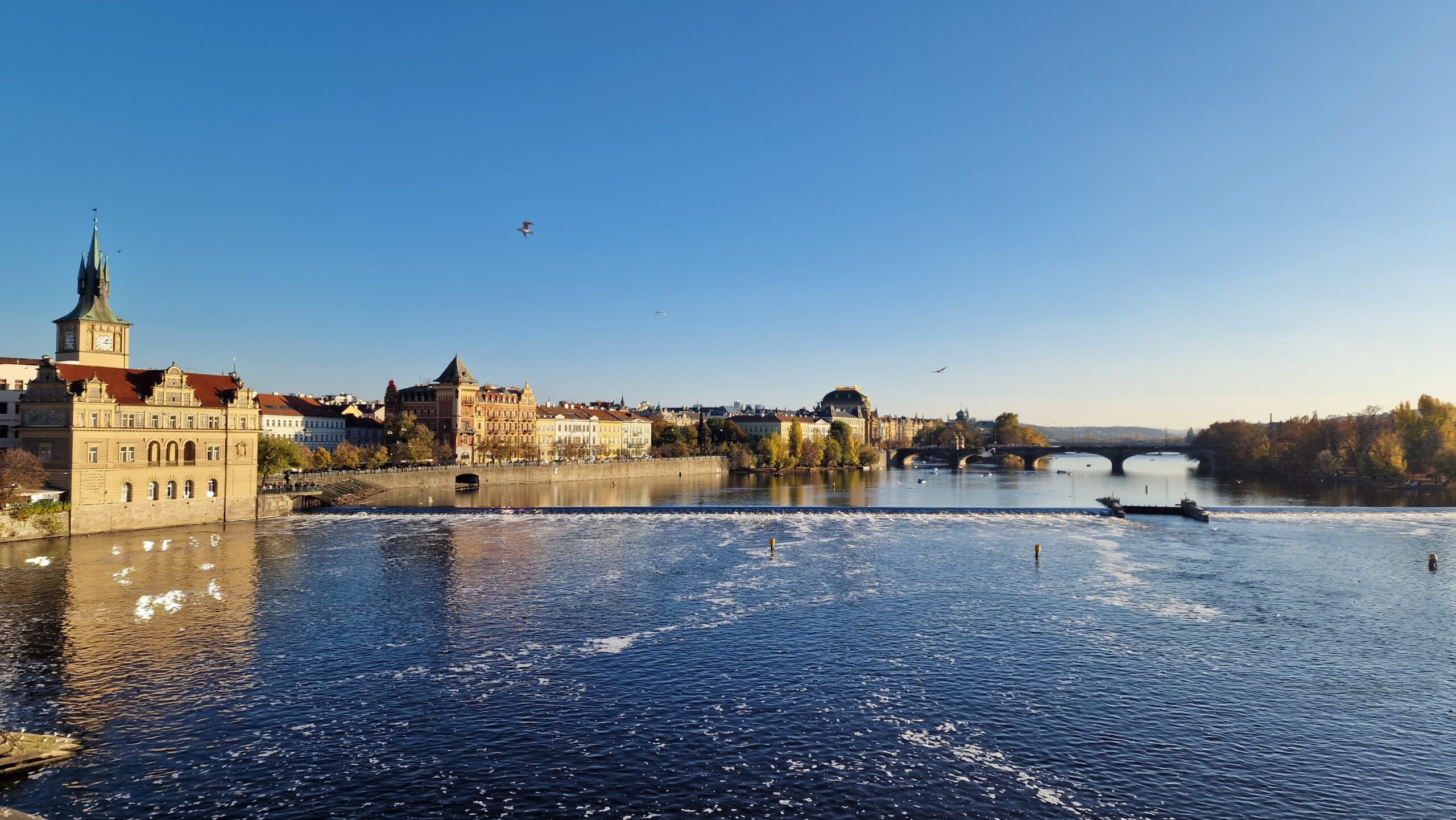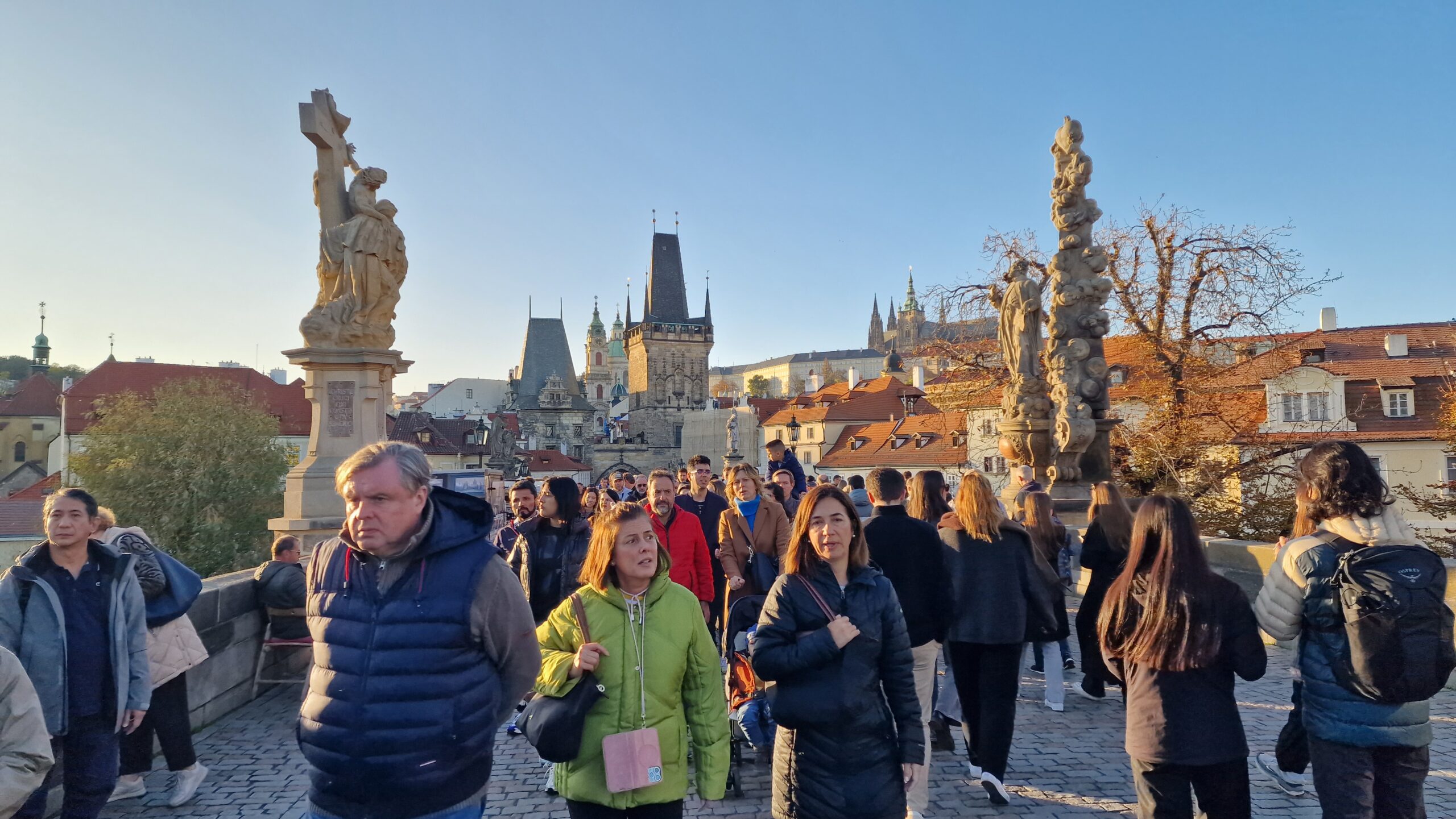 De la castel, admirând podurile care se întind peste râul strălucitor, în soarele toamnei târzii, am pășit către Mala Strana, unde ne întâmpină vechile case burgheze și unde putem admira cupola de aramă a bisericii baroce Sf. Nicolae.