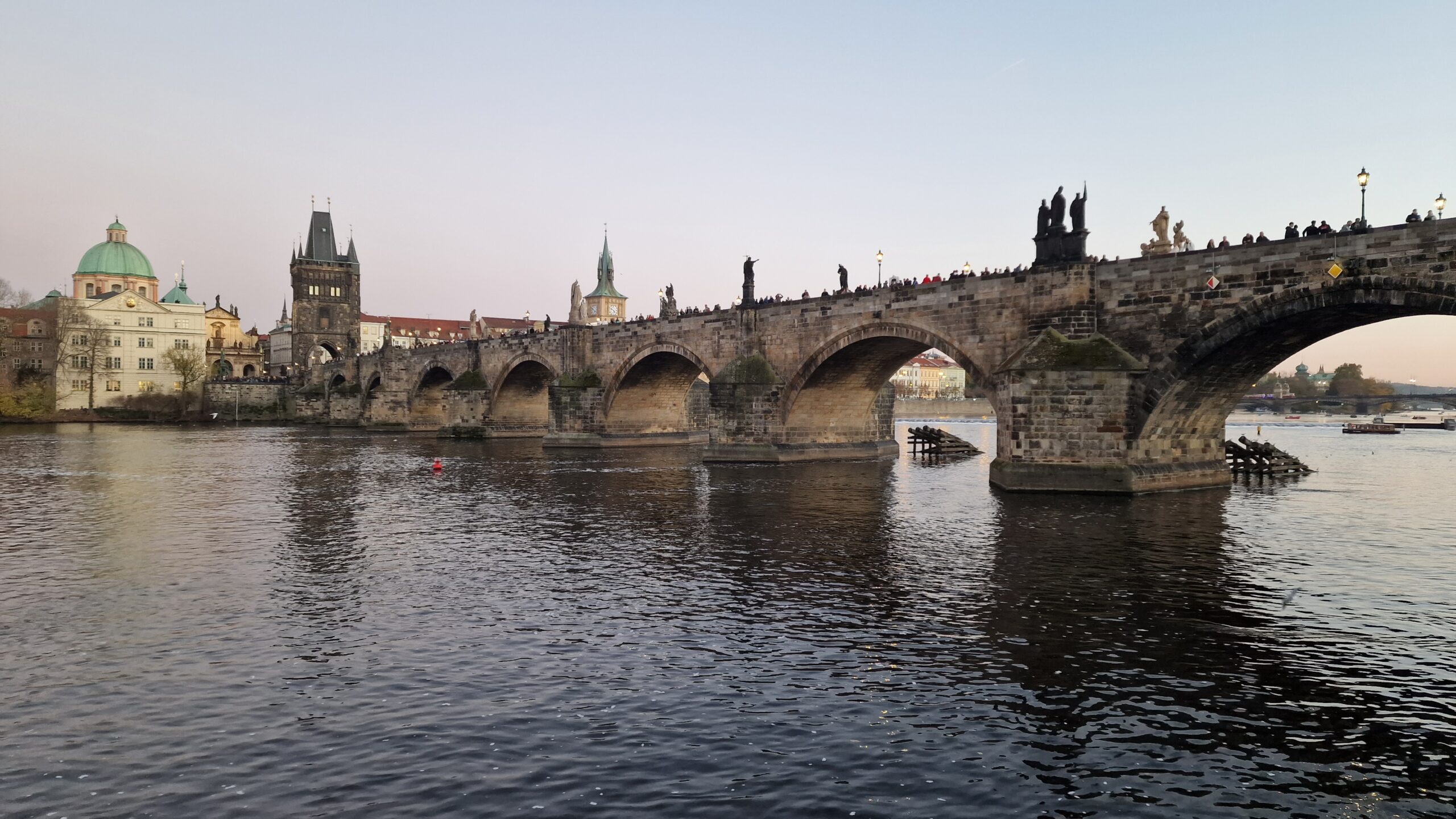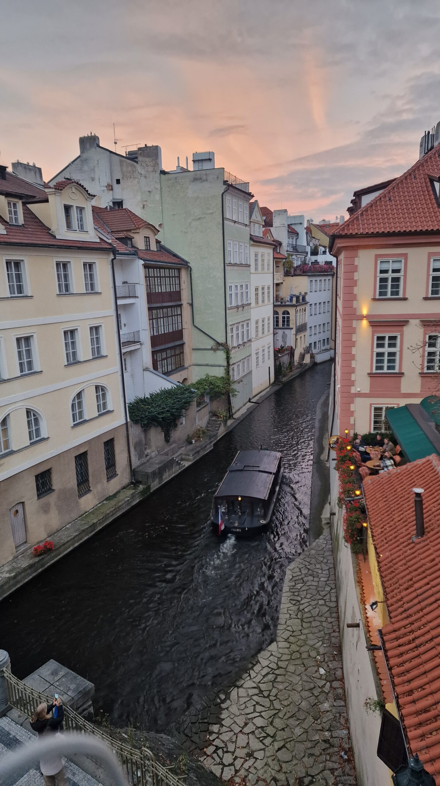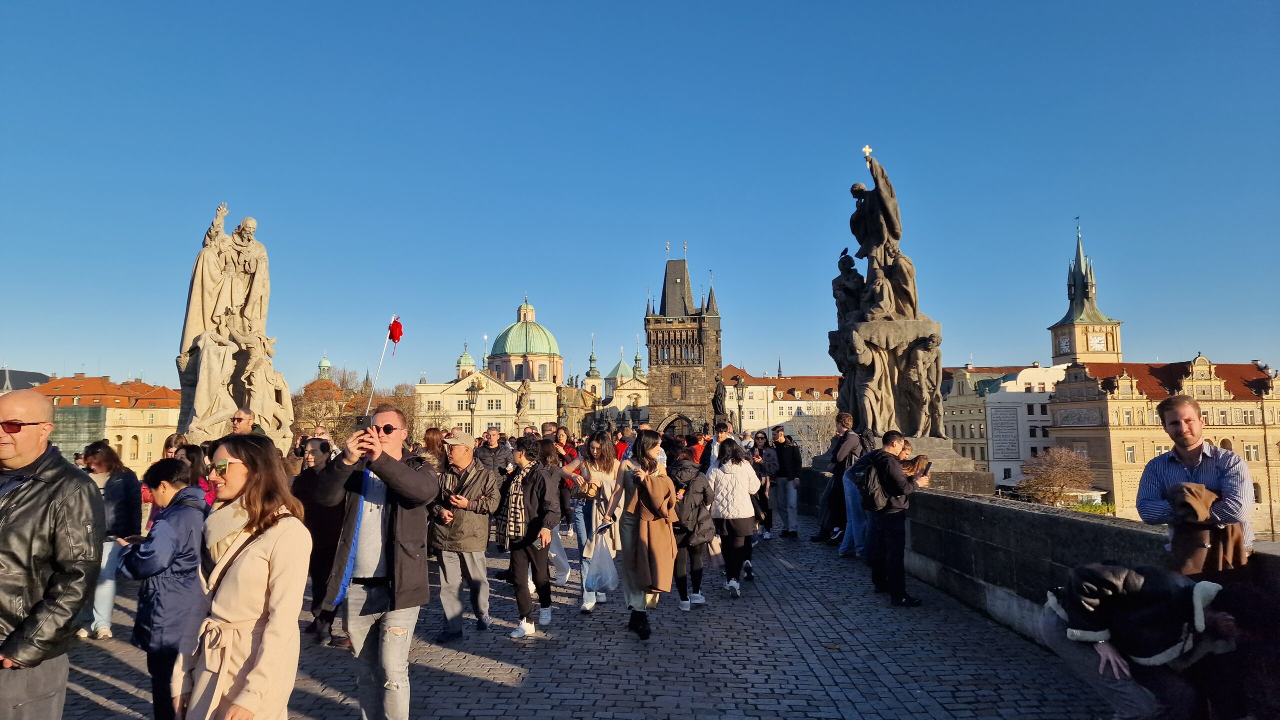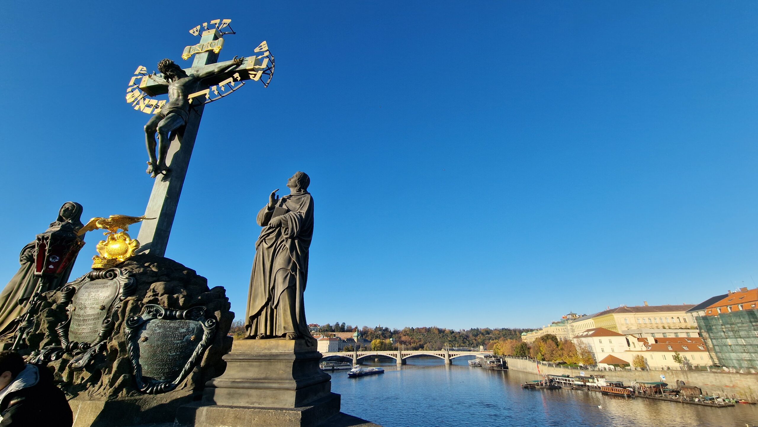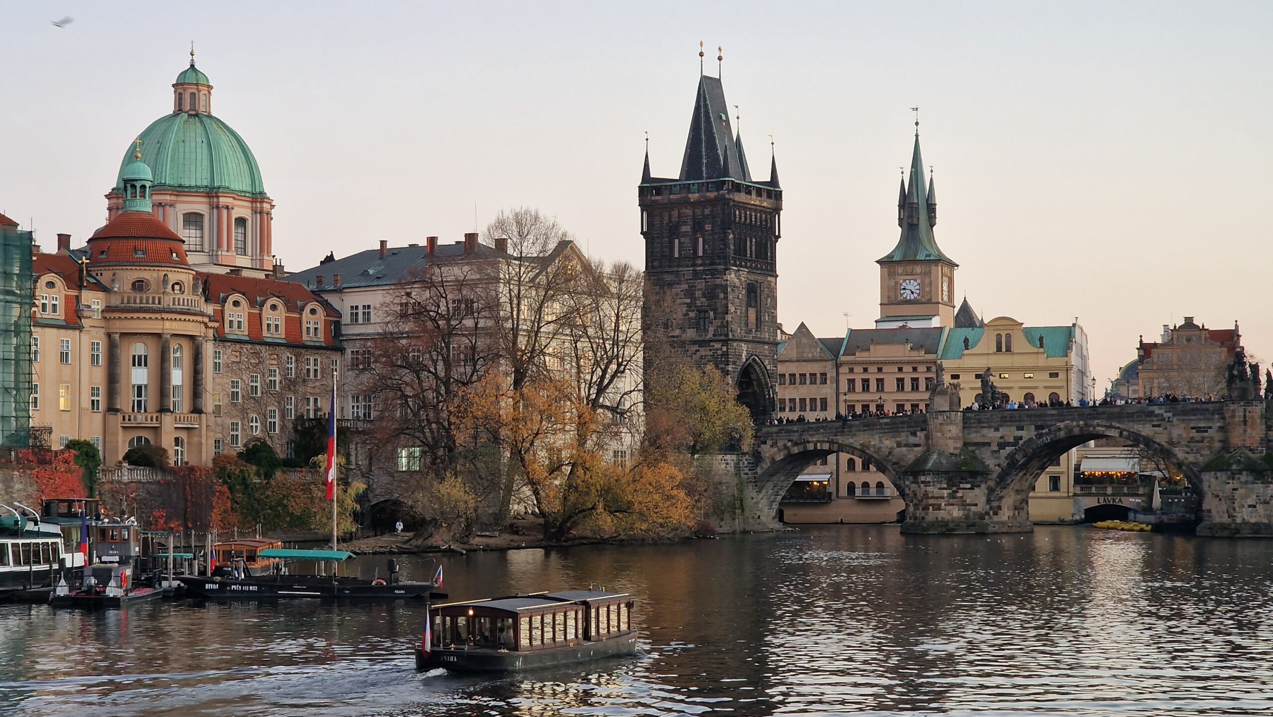 De la castel, admirând podurile care se întind peste râul strălucitor, în soarele toamnei târzii, am pășit către Mala Strana, unde ne întâmpină vechile case burgheze și unde putem admira cupola de aramă a bisericii baroce Sf. Nicolae.