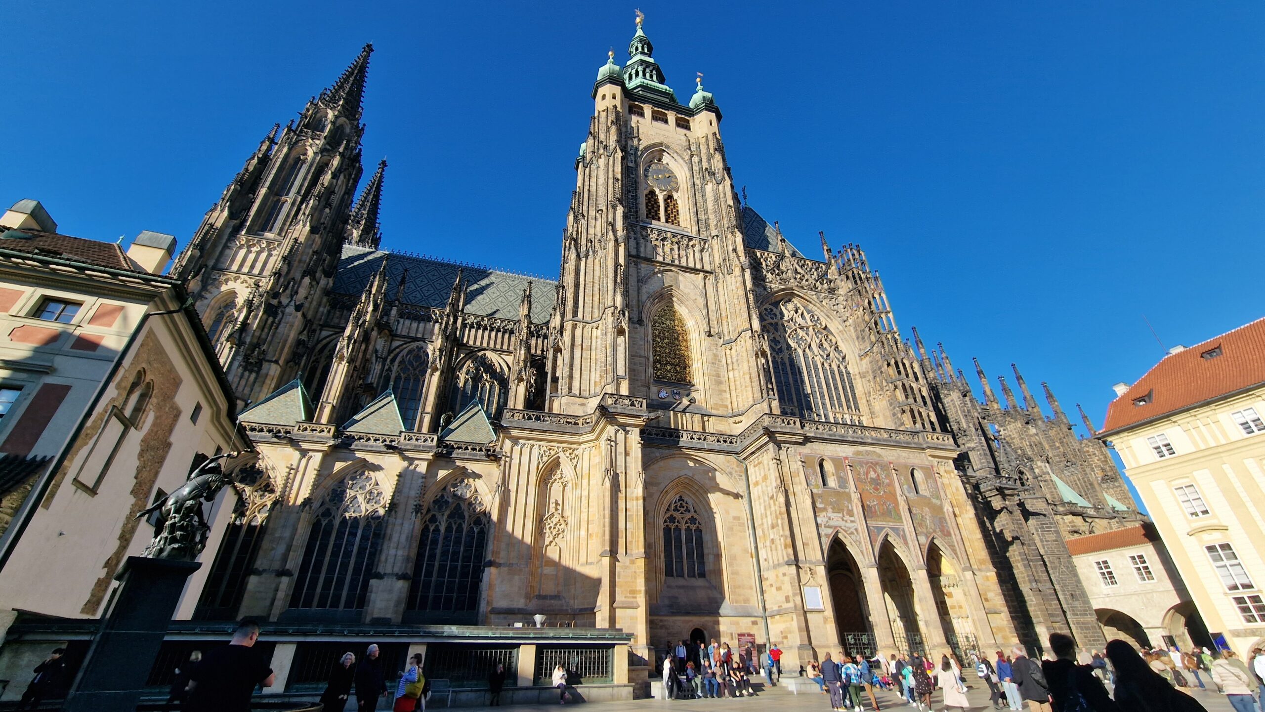 Împărțit astfel, orașul este mai ușor de explorat și vizitat. La fel ca și la Buckingham și aici garda se schimbă la ora 12:00, e un prilej de a admira costumele senzaționale și scrupulozitatea gărzilor, precum și o oportunitate de a gusta puțin din aerul de altă dată. Castelul este mai degrabă asemănător unui palat, fără turnuri, cu un design simplu și elegant. Însă impresionantă este curtea interioară a acestui castel, care găzduiește o catedrală gotică absolut spectaculoasă, pe alocuri înspăimântăroare, închinată Sf. Vitus. A doua biserică de pe domeniu este închinată Sf. Gheorghe, a cărui statuie se poate de asemenea admira în curtea castelului. Căsuțele pitorești de pe străduța de aur și grădina regală, completează acest tur nobil.